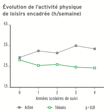 Enfin, 2 ans après l’arrêt de l’expérimentation, les enfants des collèges actions faisaient toujours 30 min d’activité physique en plus par semaine et ils passaient par jour, 30 min en moins devant la télévision. Les smartphones et réseaux sociaux n’existaient pas encore !