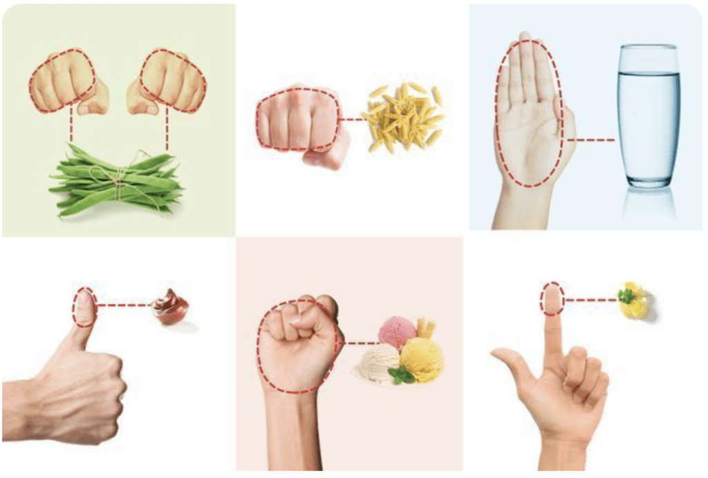 On n’a pas toujours de balance sous la main, ou le temps de peser. Dans ce cas, la main de l’enfant est un repère très pratique qui grandi avec lui !