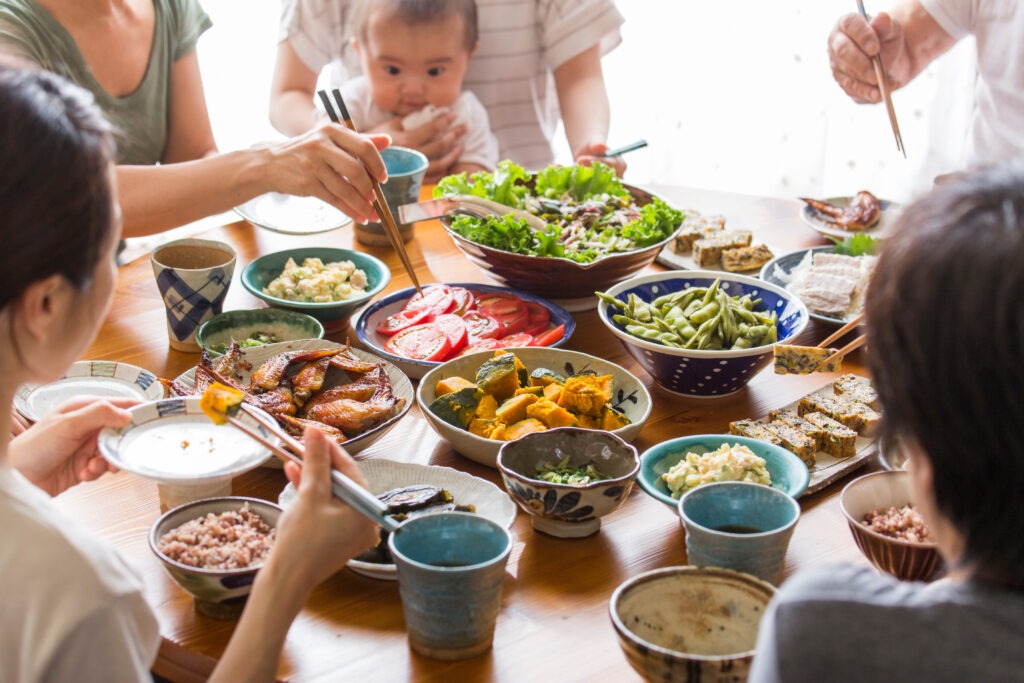 L’éducation alimentaire c’est aussi apprendre les aspects culturels du repas. L’enfant développe ainsi un sentiment d’appartenance avec ceux qui l’entourent. Ainsi, au moment de la diversification, le tout-petit va découvrir des aliments, mais aussi apprendre des manières de tables différentes en fonction de la culture de ses parents. Par exemple, sa famille va lui apprendre à manger avec des couverts, avec les mains ou bien encore avec des baguettes, etc.