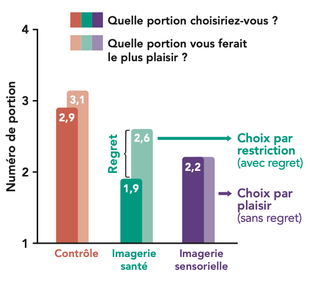 Ainsi, comme chez les enfants, l’anticipation du plaisir de la dégustation, permet de choisir une portion plus petite en étant satisfait de ce choix. Or la frustration peut engendrer une surconsommation de compensation lors des repas suivants.