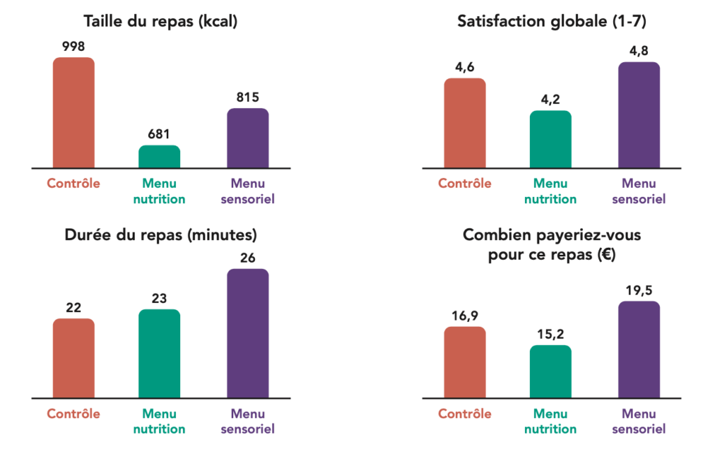 La durée du repas et la valeur perçue du repas était aussi plus élevée dans le groupe sensoriel.