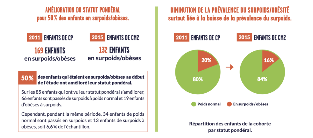 Ces 6 villes partenaires de VIF présentent ces résultats spectaculaires quand, dans le même temps, les niveaux de surpoids et d’obésité augmentaient au niveau national. Ils étaient de 18,1 chez les enfants de CM2 en 2015.